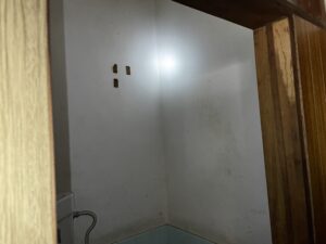 ブレーカーがついてる壁が汚い ブレーカーをどこに移動するか分からんが キレーにしてほしい。
