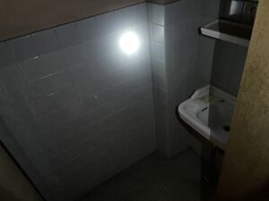 □はめ込み窓がある部屋は 入口の袖、向かって右の壁(真後ろはブレーカついてる)は